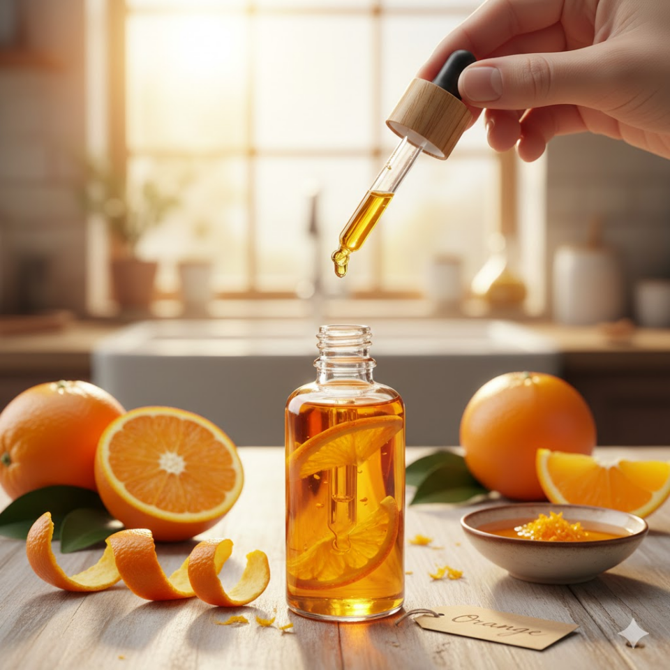- ARANCIA: Estratto per pressione a freddo delle scorze fresche, questo olio è composto quasi interamente da limonene. È un “sole liquido” capace di armonizzare l’umore e sostenere le funzioni digestive grazie alle sue proprietà carminative.