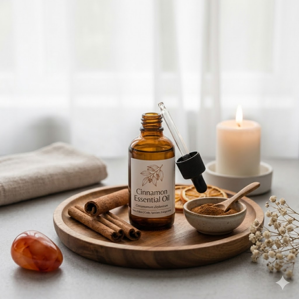 - CANNELLA: Ottenuto per distillazione in corrente di vapore, l’olio essenziale di Cannella è un potente alleato naturale. Grazie all’alto contenuto di aldeide cinnaminica, vanta proprietà antisettiche e stimolanti tra le più elevate in aromaterapia.